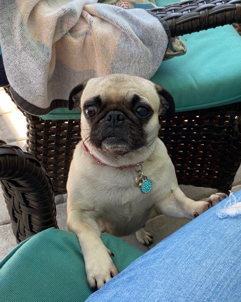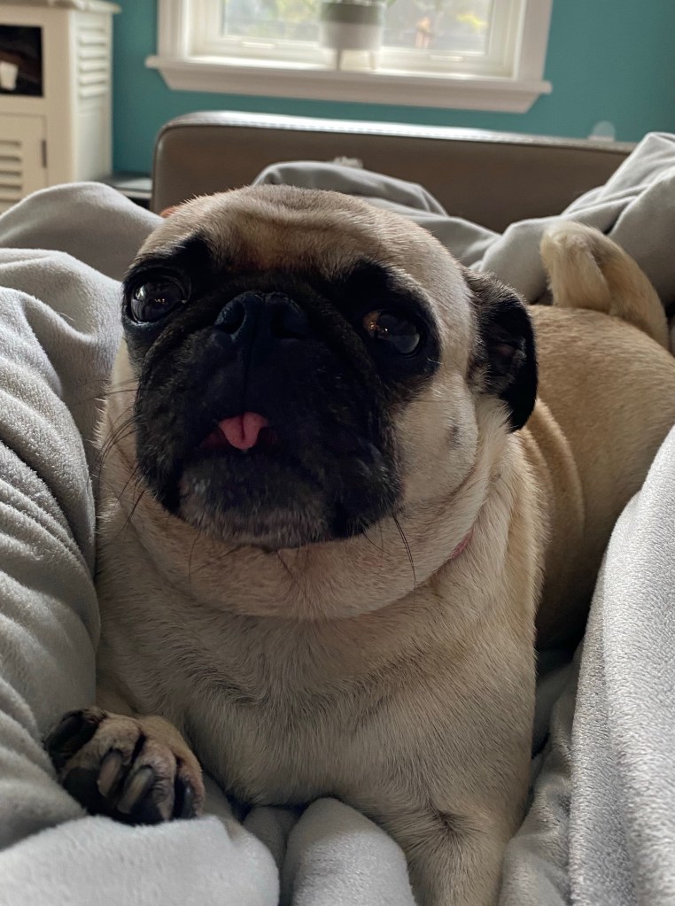 And that’s where doggie diapers come in. For a small fee and minor inconvenience (you have to remove it when she goes out to go potty and put it back on when she comes back inside), all the little drips are no longer a problem! Fortunately, Sushi just accepts having the diaper on. Not all dogs would leave it be. So that’s a blessing.